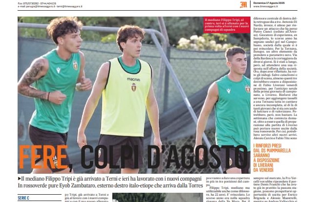 Ternana, la rassegna stampa del 17 agosto 2025