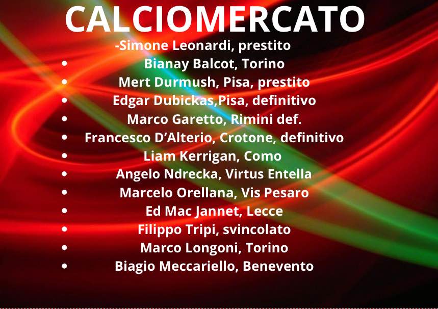 CALCIOMERCATO, IL TABELLONE DEGLI ARRIVI IN ROSSOVERDE