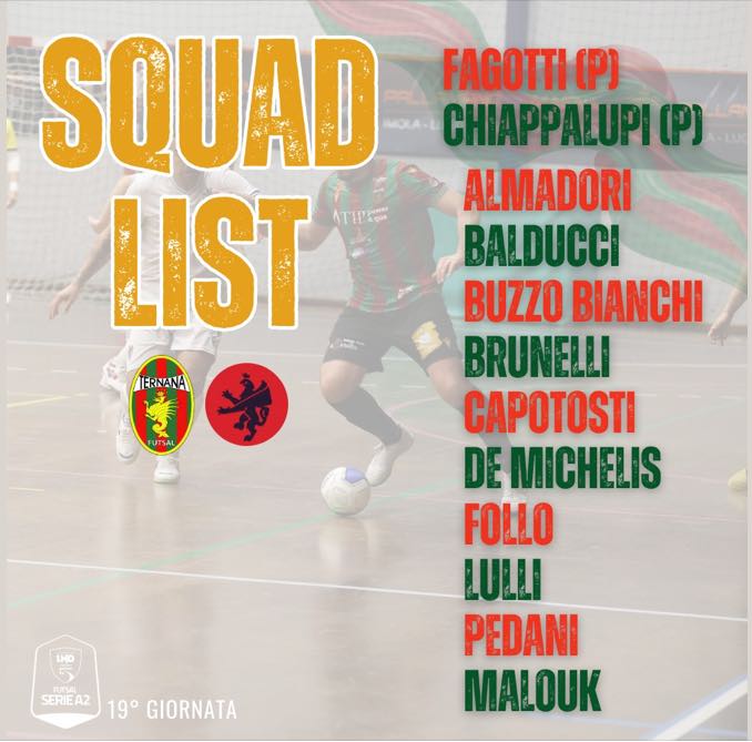 Appuntamento per il pomeriggio odierno al Paladivittorio per assistere al match di serie A2 tra Tip Power Ternana Futsal e l’Imolese, formazione che vanta 3 punti in più rispetto alla squadra di Federico Pellegrini. La partita si gioca alle ore 17 e, come sempre l’ingresso sarà gratuito, La. compagine rossoverde, dopo il successo della settimana scorsa a Spello, deve provare a superare il ” Complesso Paladivittorio “, visto che raramente nella corrente stagione è riuscita a portare a casa i 3 punti. Ad eccezione di Romiti sono tutti disponibili i ragazzi della rosa e quindi Pellegrini potrà schierare una squadra che dovrà esprimere il meglio di sè stessa per aver ragione della formazione romagnola. Questo il quadro dei convocati pubblicato sulla pagina Facebook della società rossoverde: